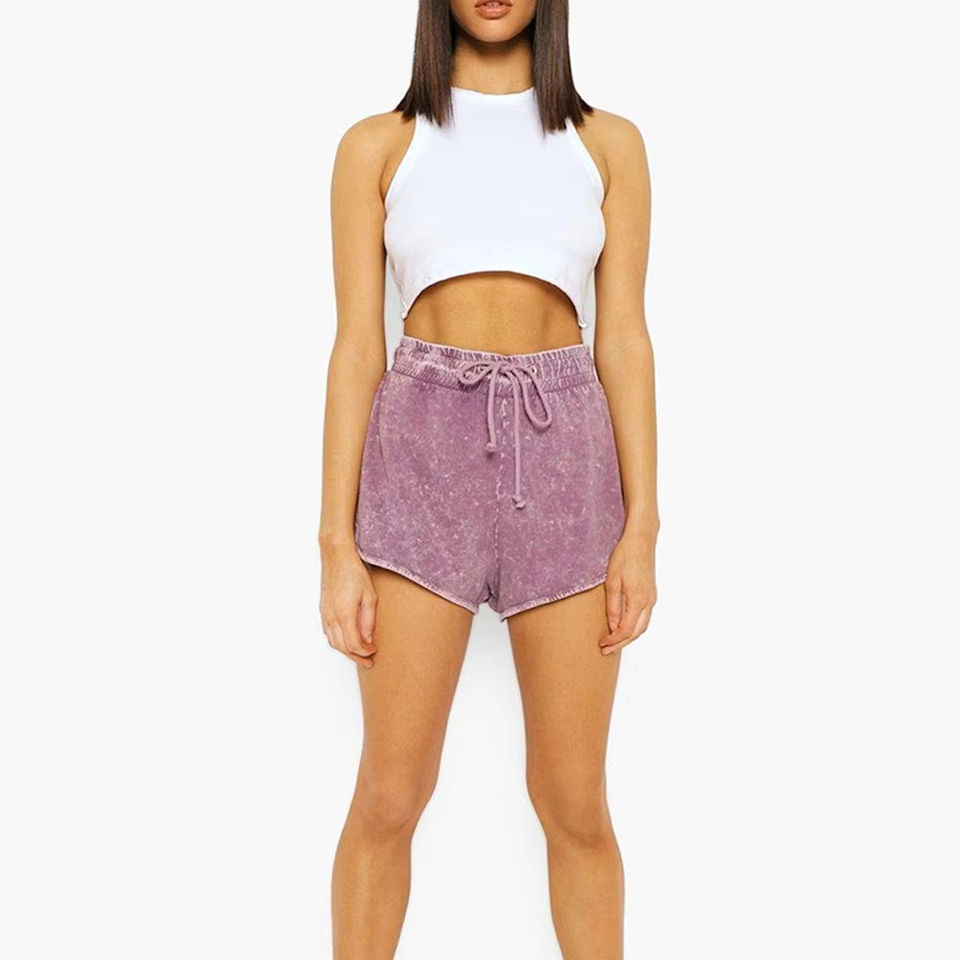 กางเกงขาสั้นผู้หญิงคุณภาพสูง ผ้าฝ้าย 100% ซักกรด ทรงลำลอง ทันสมัย ปิดด้วยเชือกผูก แห้งเร็ว ระบายอากาศดี เป็นมิตรกับสิ่งแวดล้อม แฟชั่น
