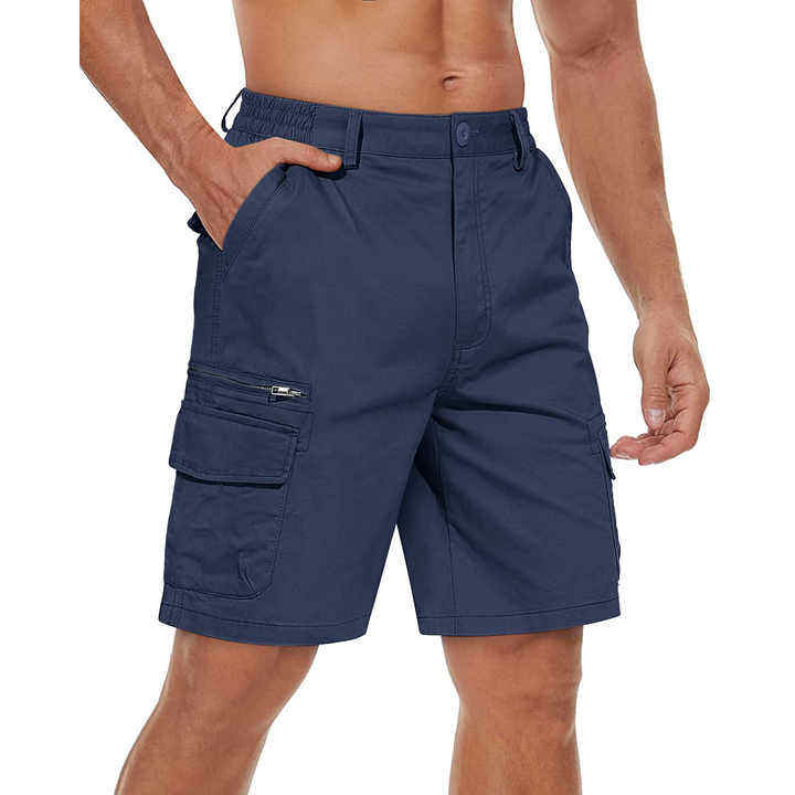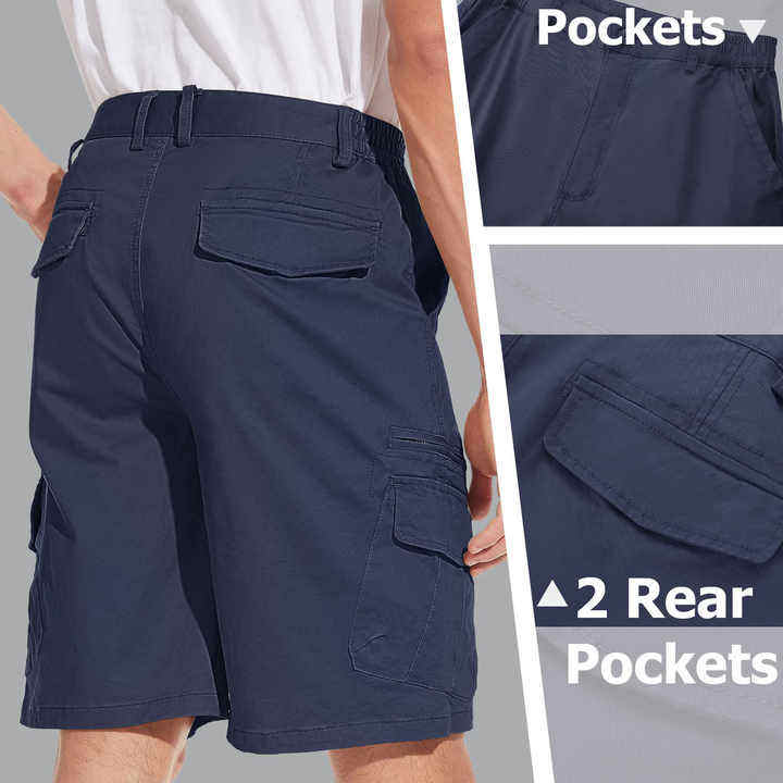 กางเกงขาสั้นคาร์โก้ผู้ชายคุณภาพสูง ผ้าฝ้าย 100% ทรงลำลอง ไม่หด ไม่ยับ มีกระเป๋าข้าง เอวยางยืด ระบายอากาศได้ดี