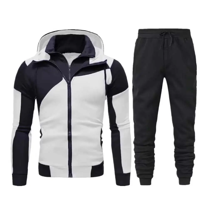 ชุดกีฬาผู้ชายคุณภาพสูง ผ้าฝ้าย 100% ชุดออกกำลังกายแบบกำหนดเอง ชุดสองชิ้น กางเกงขายาว ชุดวิ่งผู้ชาย