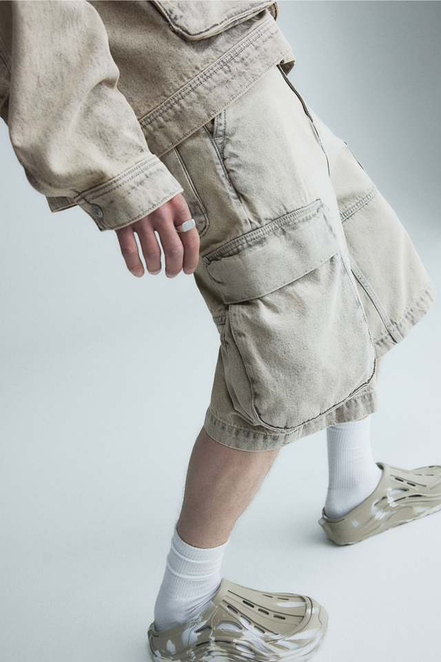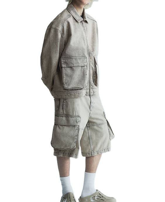 High Quality 100% Cotton Denim Grey Shorts for Men Relaxed Loose Fit Knee Length 6-Pocket Cargo Casual Wholesale Factory Price