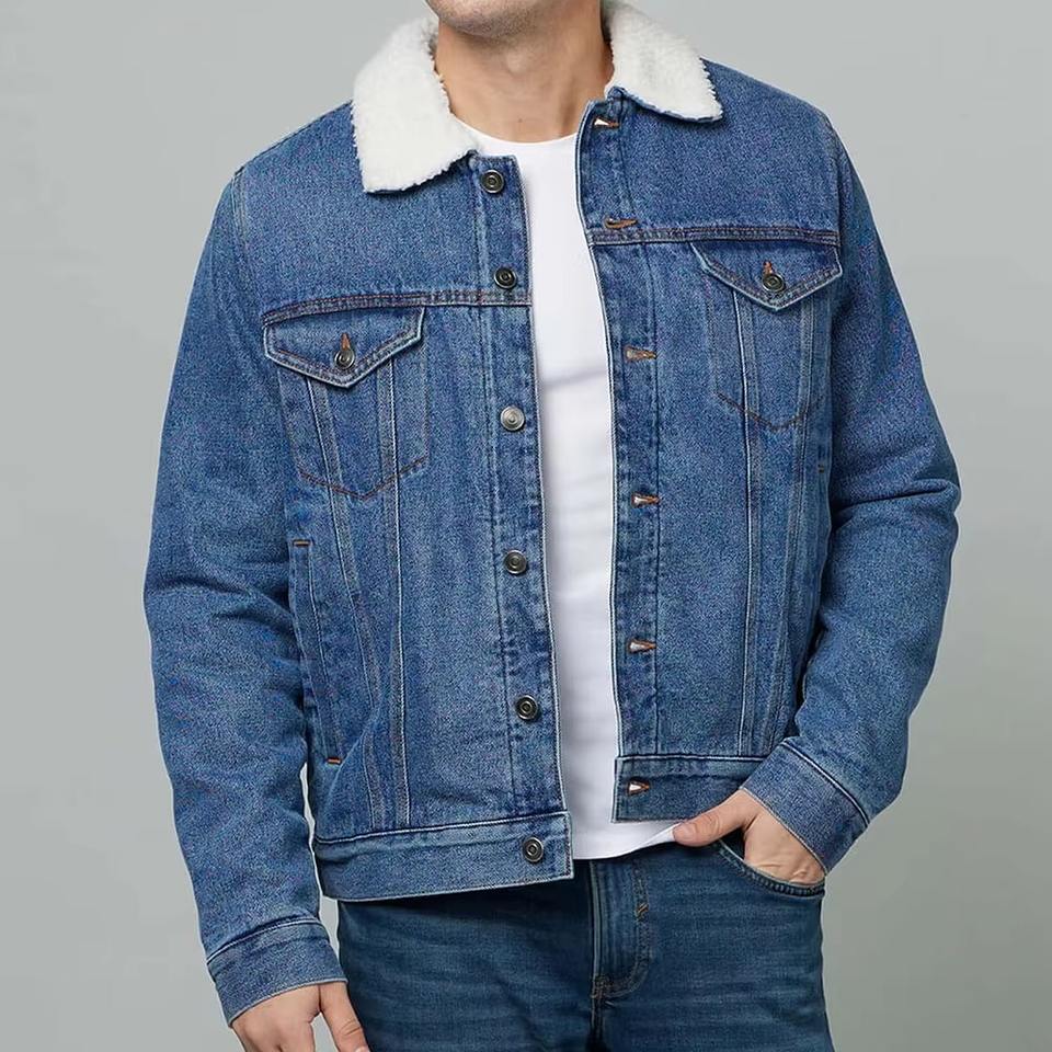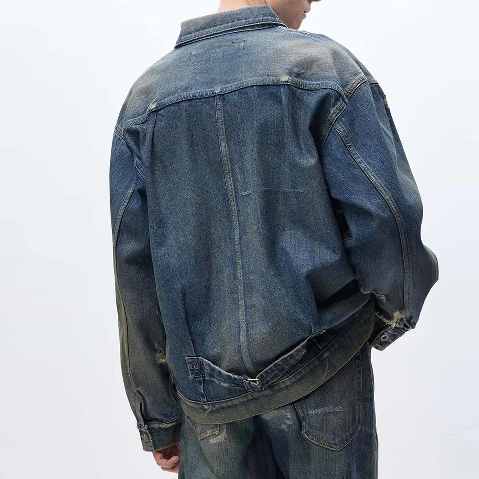 แจ็คเก็ตเดนิมผ้าฝ้ายคุณภาพสูง 100% สำหรับผู้ชาย ระบายอากาศได้ดี สีพื้น สไตล์วินเทจ กันลม เป็นมิตรกับสิ่งแวดล้อม แบบสองด้าน ปักลาย สำหรับฤดูหนาว