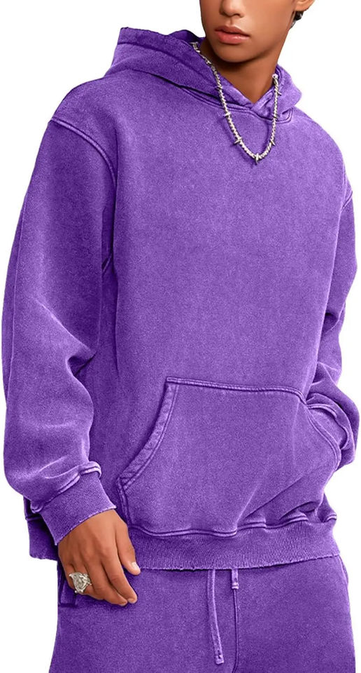 เสื้อฮู้ดดี้คุณภาพสูง ผ้าฝ้ายฟลีซ 100% ซักกรด สไตล์วินเทอร์ ซีรีส์ High Street ลุคซักเก่าแบบวินเทจ ซักหิน แห้งเร็ว