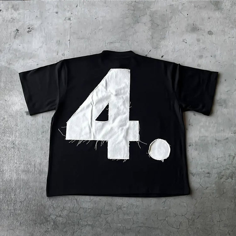 เสื้อยืดผู้ชายผ้าฝ้ายถักคุณภาพสูง 100% เนื้อหนา ระบายอากาศดี สไตล์วินเทจ ทรงหลวม ตัดสั้น แต่งแพทช์แบบกำหนดเอง