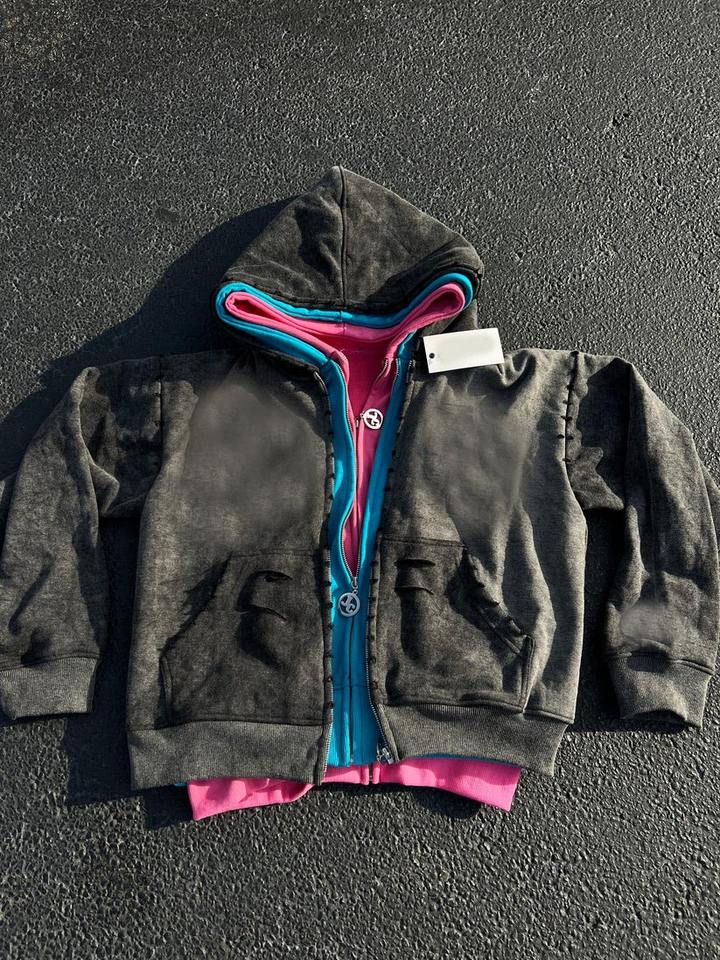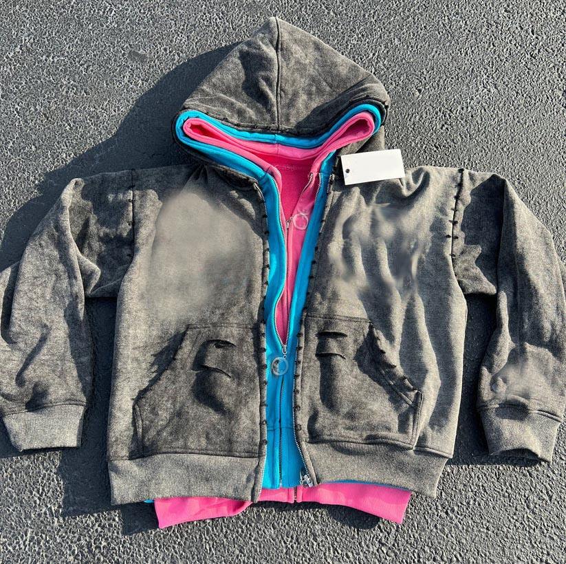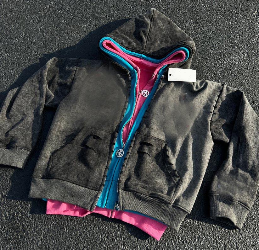 เสื้อฮู้ดดี้ทรงโอเวอร์ไซส์แบบสามชั้น ล้างสีแบบแอซิดวอช ผู้ชาย ผ้าฝ้าย 100% เนื้อหนา สไตล์สตรีทแวร์ ผู้ผลิต OEM