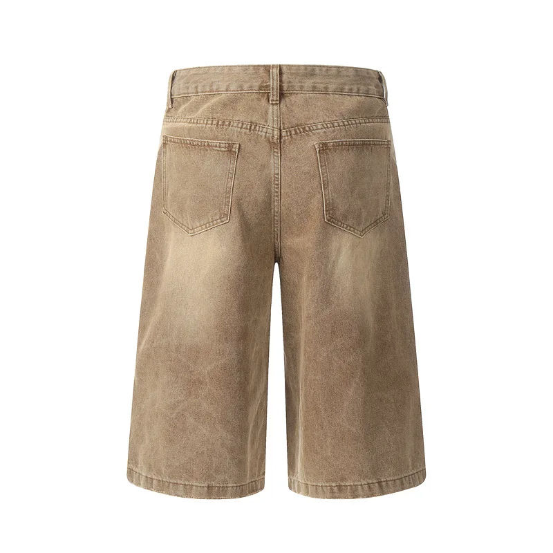 กางเกงขาสั้นผ้าเดนิมผ้าฝ้าย100% วินเทจสำหรับผู้ชายพิมพ์โลโก้ตามสั่งสไตล์ลำลอง