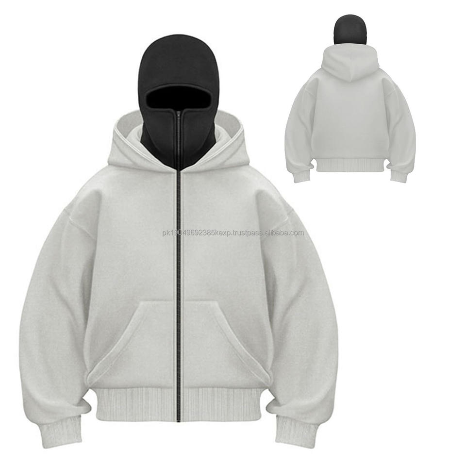 ชุดเสื้อผ้าผู้ชายคุณภาพสูง ผ้าฝ้าย 100% เสื้อฮู้ดแบบสวมหัวสำหรับฤดูหนาว พร้อมหน้ากากบาลาคลาวา