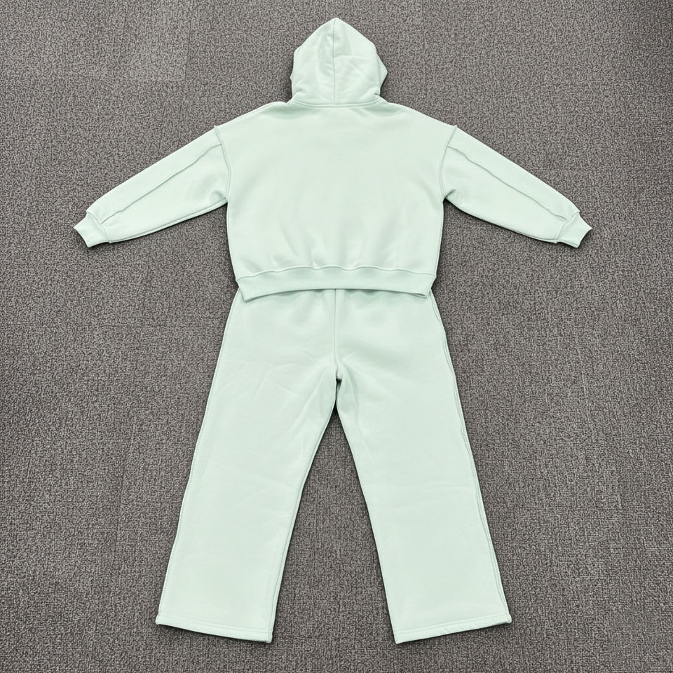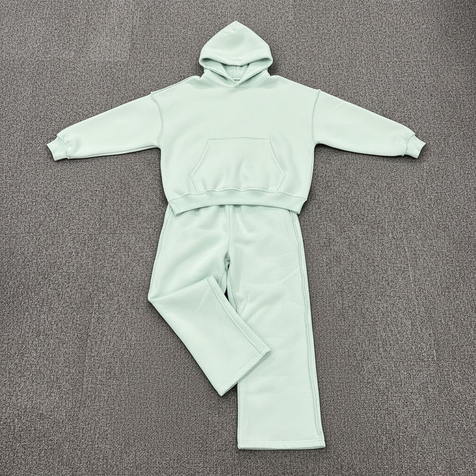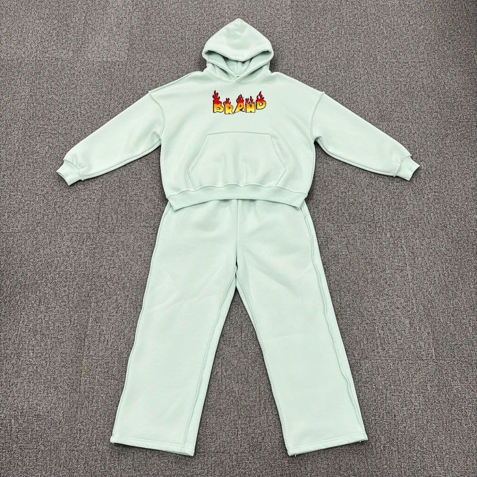 High Quality 100% Cotton Men's Regular Fit Winter Solid Streetwear Plus Size Tracksuit Flared Sweatpants Hip Hop 2 Piece Set