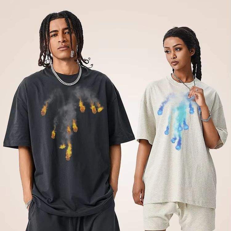 เสื้อยืดผ้าฝ้าย100% สำหรับผู้ชายเสื้อแขนสั้นพิมพ์ลายสุดสร้างสรรค์น้ำหนัก300กรัมด้านหน้าพิมพ์ลายดิจิตอลผ้าถัก