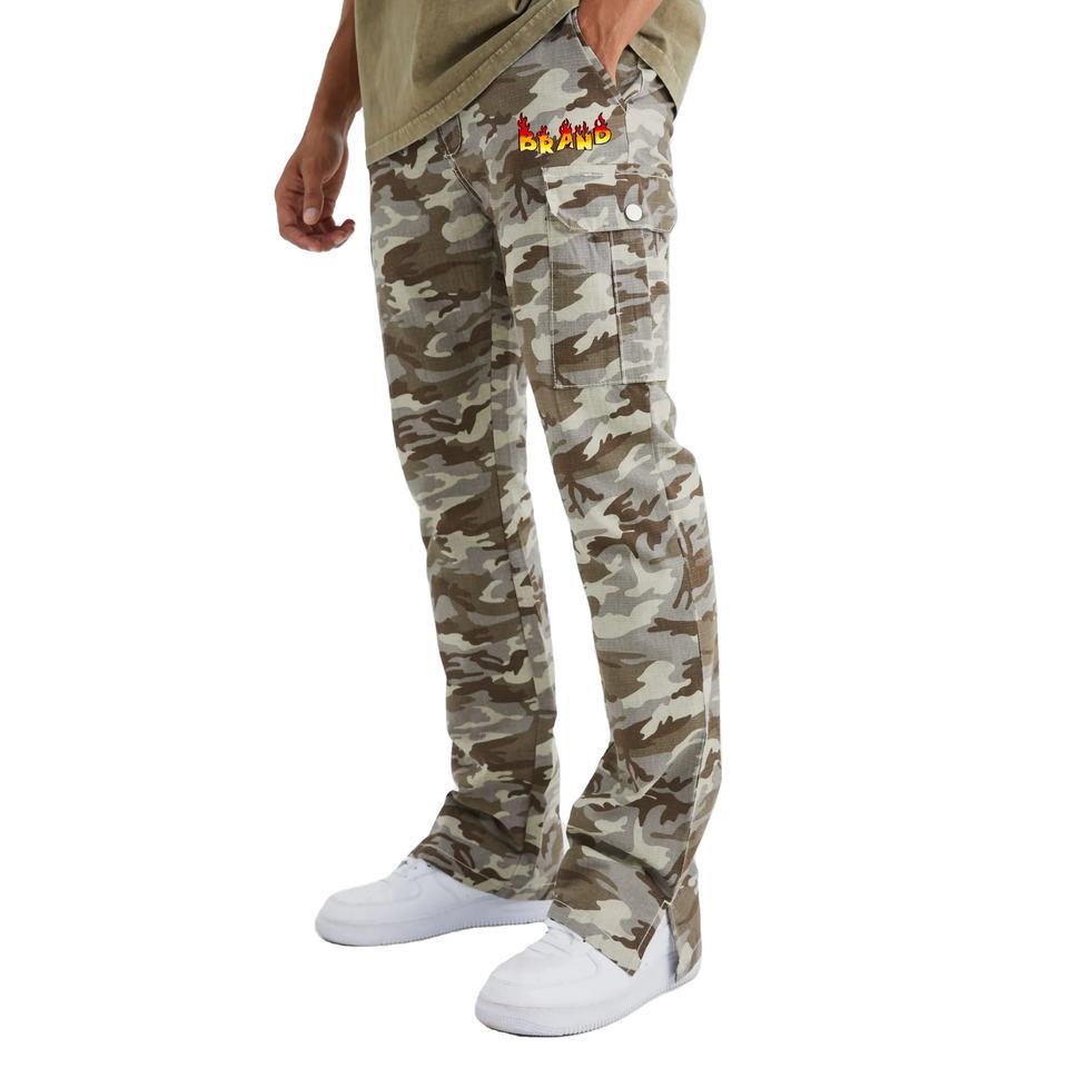 กางเกงขายาวผ้าฝ้าย100% สำหรับผู้ชายกางเกงวอร์มทรงแบ็กกี้ลายพรางพิมพ์โลโก้ DTF