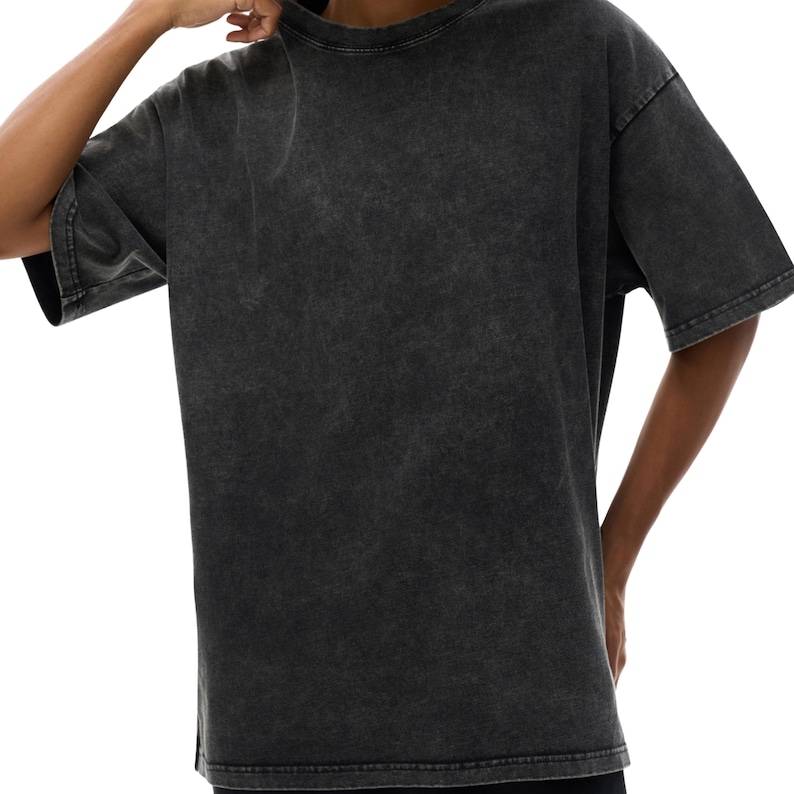 เสื้อยืดผู้ชายคุณภาพสูง ผ้าฝ้าย 100% ล้างสีแบบแอซิดวอช ทรงโอเวอร์ไซส์ ลายพื้นเรียบ พร้อมพิมพ์โลโก้ ผลิตจากผ้าถัก