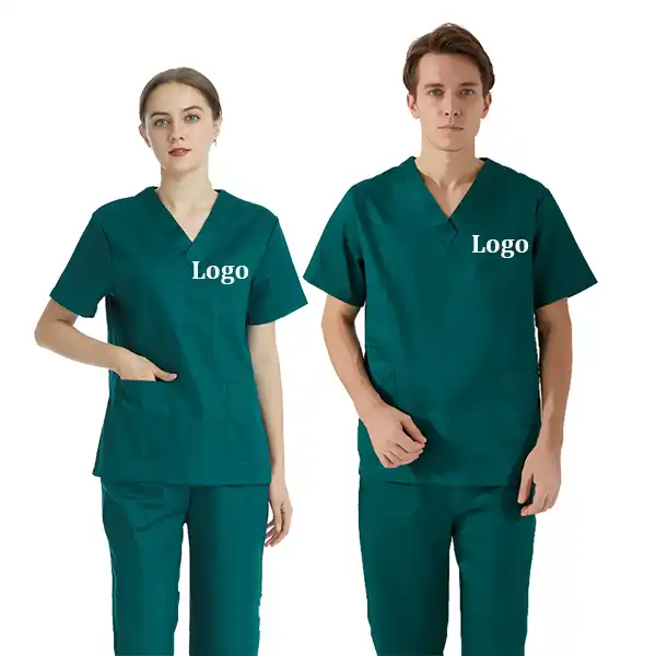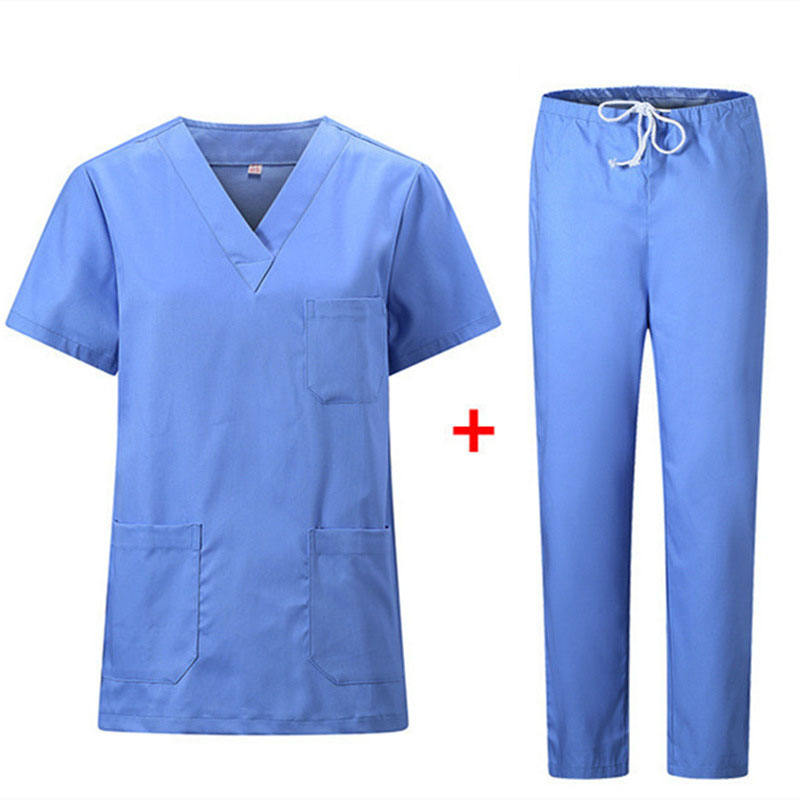 ผ้าฝ้าย 100% คุณภาพสูง oem โลโก้ที่กําหนดเองพยาบาลชุด v คอด้านบนกางเกงผ่าตัดผู้ชายผู้หญิงแพทย์โรงพยาบาลชุดขัดชุดสูท