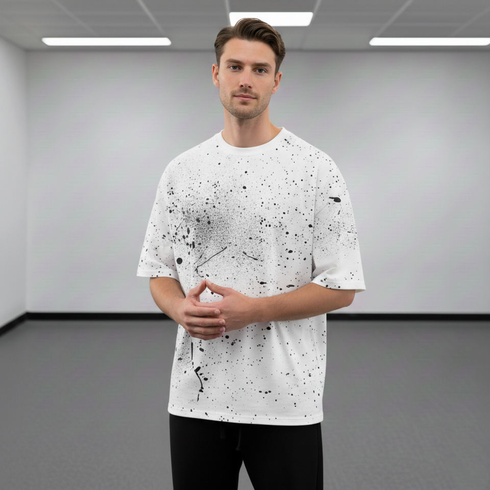 เสื้อยืดโอเวอร์ไซส์ผู้ชายคุณภาพสูง ผ้าฝ้าย 100% ลายพิมพ์แบบพิเศษ ปักโลโก้ ทรงหลวม ผ้าเนื้อดี สไตล์ฮิปฮอป