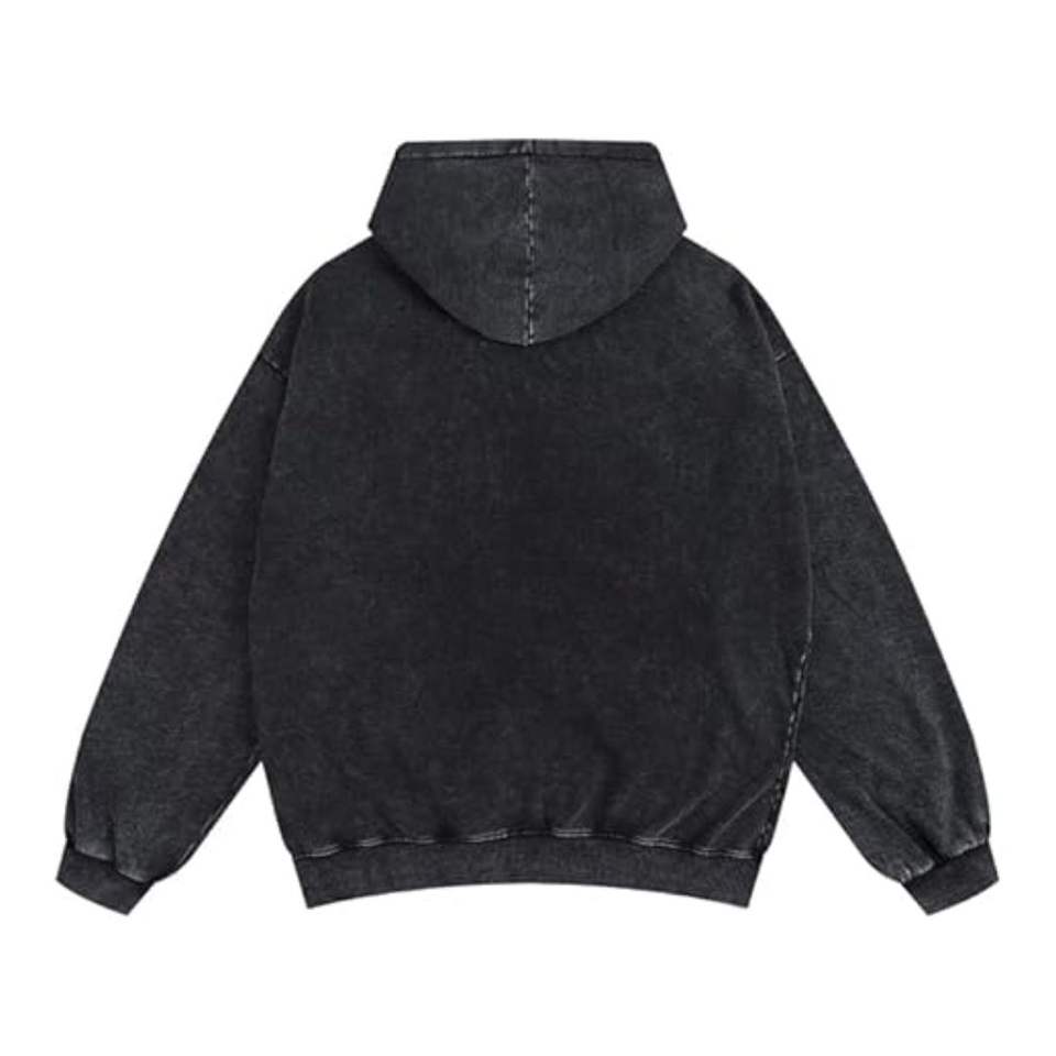 เสื้อมีฮู้ดสไตล์สตรีทไซส์ใหญ่พิเศษมีซิปผ้าคอตตอน100% พิมพ์ลายตามสั่งสีดำซักได้ด้วยหิน