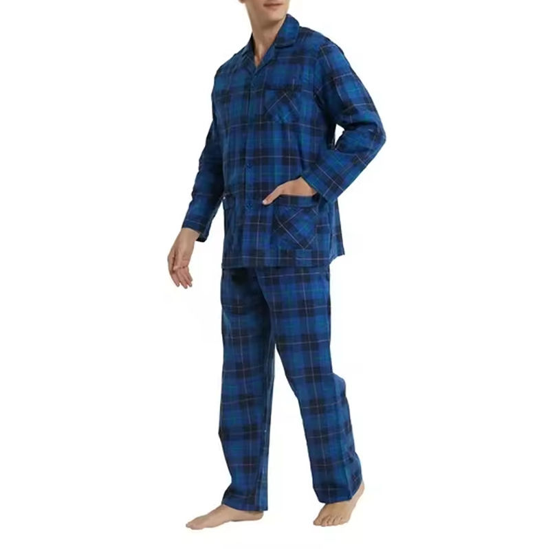 ชุดนอนผ้าฝ้าย100% สำหรับผู้ชายชุดนอนเลานจ์ชิ้นสำหรับใส่ในบ้านฤดูใบไม้ร่วงชุดกลางคืน