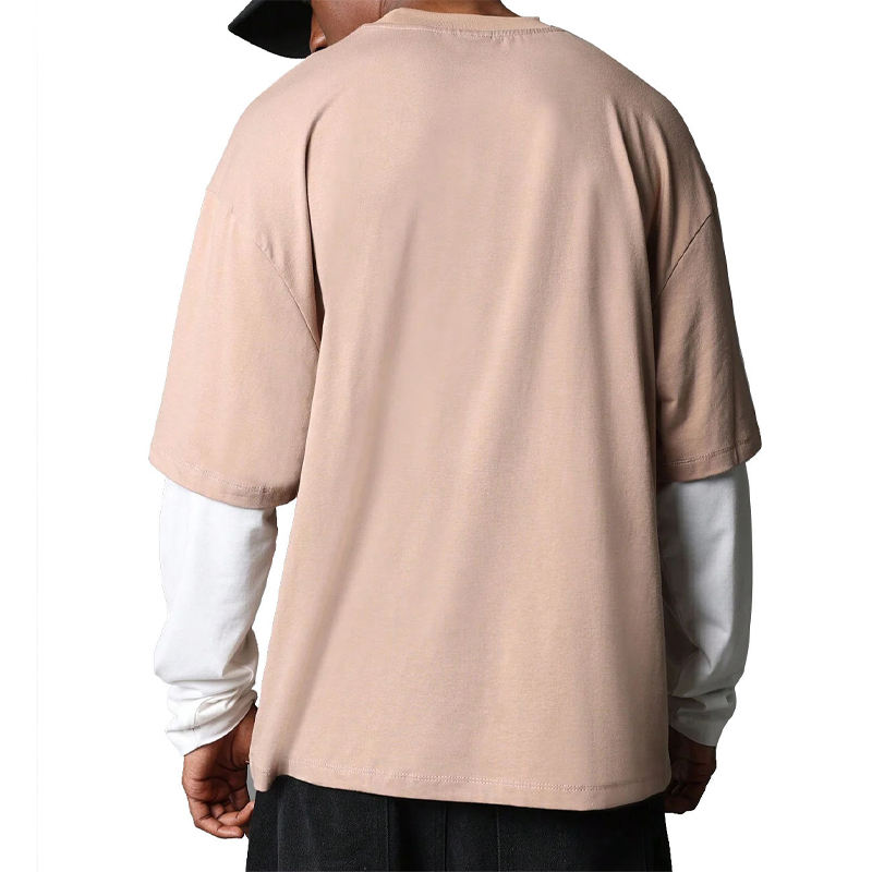 เสื้อยืดผ้าฝ้ายสีชมพู100% สำหรับผู้ชายดีไซน์โลโก้แบบกำหนดเองการพิมพ์สกรีนผ้าไหมทรงหลวมแบบสองชั้น