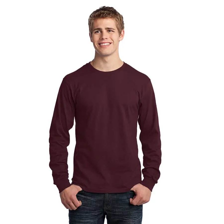 เสื้อยืดแขนยาวโอเวอร์ไซส์สำหรับผู้ชายเสื้อยืดแขนยาวผ้าคอตตอนใส่ได้ทั้งชายและหญิงออกแบบได้ตามที่ต้องการ