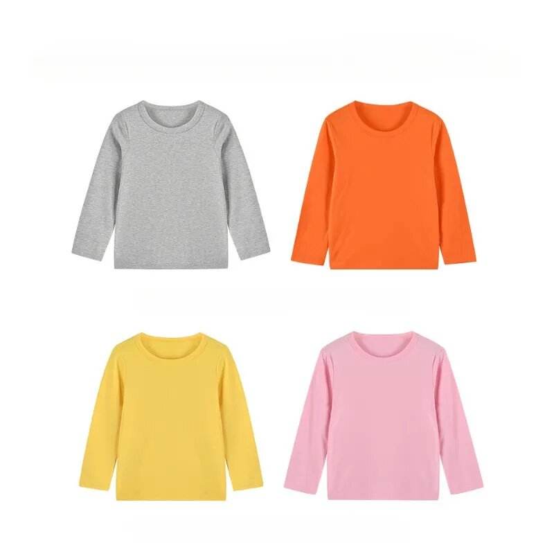 เสื้อแขนยาวสำหรับเด็กผู้ชายและเด็กผู้หญิง, เสื้อแฟชั่นแขนยาวผ้าฝ้าย100% สีตัดกัน
