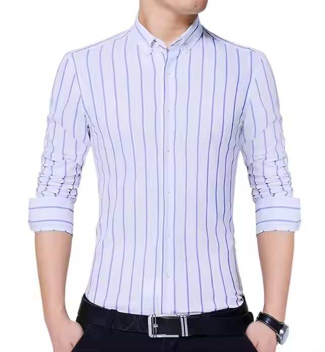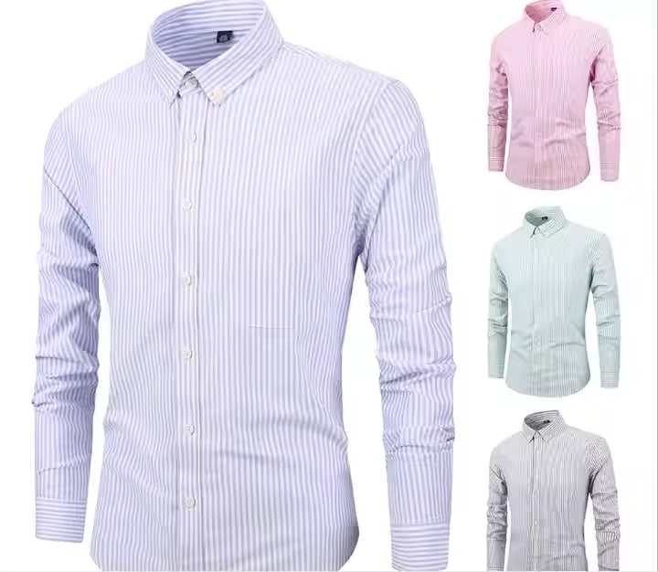 เสื้อเชิ้ตลำลองผู้ชายแขนยาวเข้ารูปผ้าฝ้าย100% ไม่พันกันรอยยับระบายอากาศใส่ในสำนักงานสำหรับฤดูใบไม้ร่วง