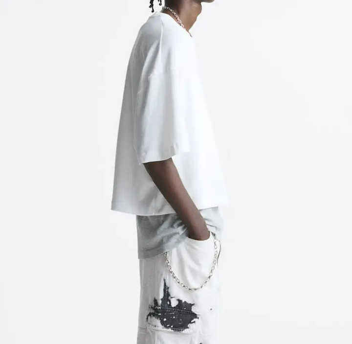 เสื้อยืดคอกลมแขนสั้นผ้าฝ้ายย้อมสีโอเวอร์ไซส์สำหรับใส่ไป100%