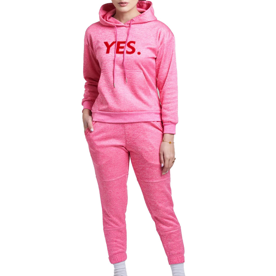ชุดวอร์มสองชิ้นสำหรับผู้หญิงผ้าฟลีซผ้าฝ้ายสี100%