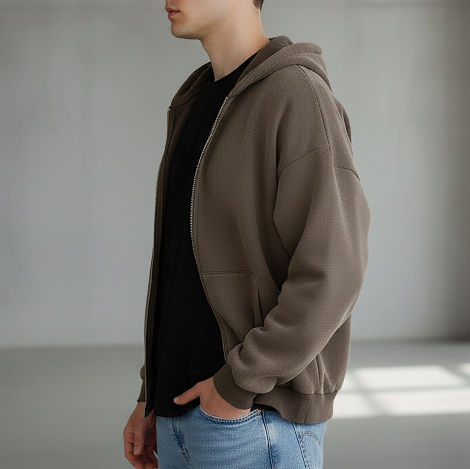 เสื้อฮู้ดดี้ผู้ชายผ้าฝ้ายคุณภาพสูง 100% เนื้อหนา สีพื้น ซิปหน้า สไตล์ลำลอง ทรงบ็อกซี่ ฮิปฮอป