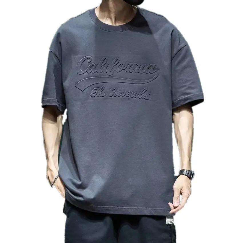 เสื้อยืดผ้าฝ้าย100% สำหรับผู้ชายและผู้หญิง,เสื้อยืดลายนูนคอกลมทรงหลวมทำตามสั่งปี3D