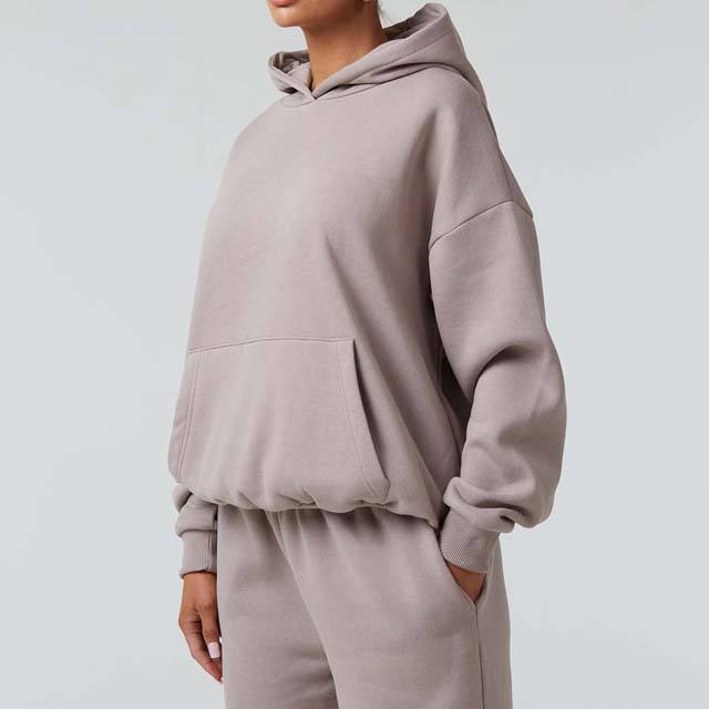 ชุดวอร์มผ้าฟลีซมีฮู้ดสำหรับผู้หญิง คุณภาพสูง เป็นมิตรกับสิ่งแวดล้อม ผลิตจากผ้าฝ้าย 100% เหมาะสำหรับฤดูใบไม้ร่วง เสื้อแขนยาวลำลอง สีพื้น ทรงปกติ