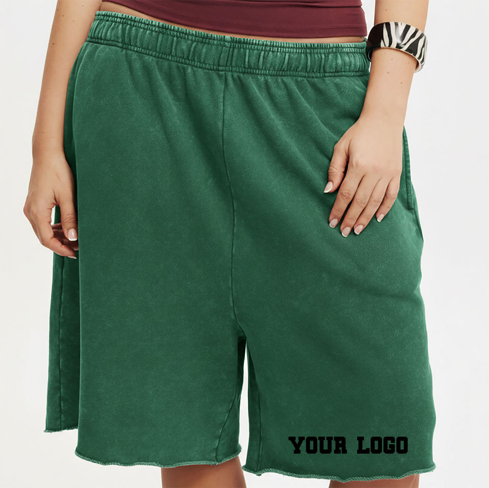 กางเกงขาสั้นวินเทจผู้หญิงคุณภาพสูง ผ้าฝ้าย 100% พิมพ์ลายโลโก้ด้วยผ้าไหมแบบสั่งทำ ระบายอากาศได้ดี 300gsm เป็นมิตรกับสิ่งแวดล้อม แห้งเร็ว ติดกระดุม