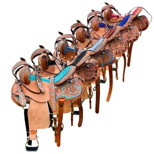 อานม้าหนังวัวแท้คุณภาพสูง 100% แบบตะวันตก สำหรับขี่ม้าบาร์เรล นั่งสบาย ทนทาน ปรับแต่งสีได้ สำหรับกีฬาขี่ม้า