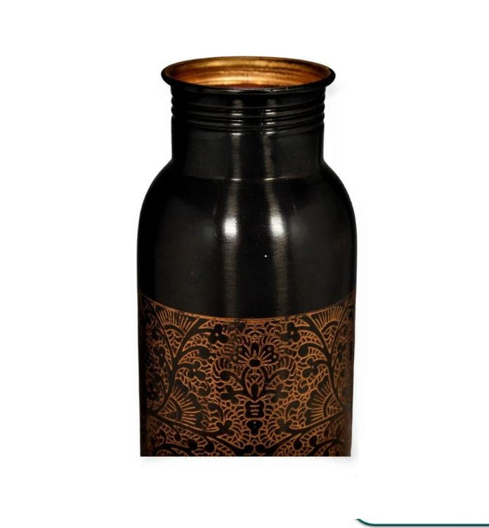 ขวดทองแดงโบราณคุณภาพสูง 100% ทำมือ ลายสลัก 1 ลิตร ฝาปิดเก็บความร้อน ดื่มได้โดยตรง ขวดทองแดงสำหรับเล่นกีฬา มีตัวอย่างให้ทดลองฟรี