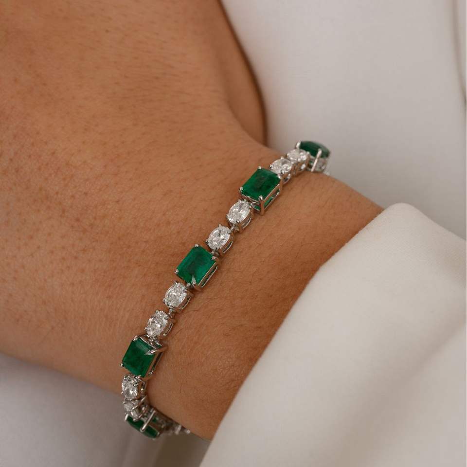 สร้อยข้อมือเทนนิสเพชรและมรกตธรรมชาติ100% คุณภาพสูงดีไซน์มีเอกลักษณ์สีทองขาวล้วน18K ของขวัญสำหรับงานเลี้ยง