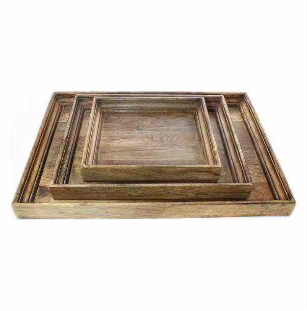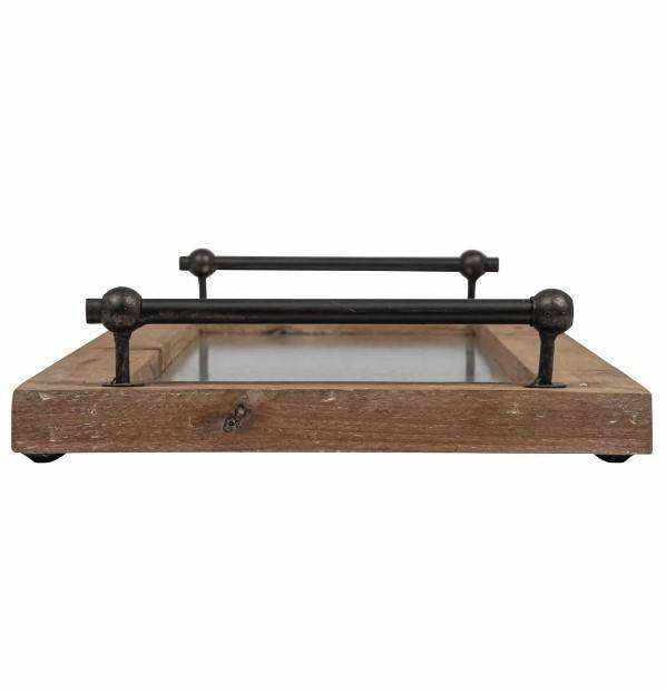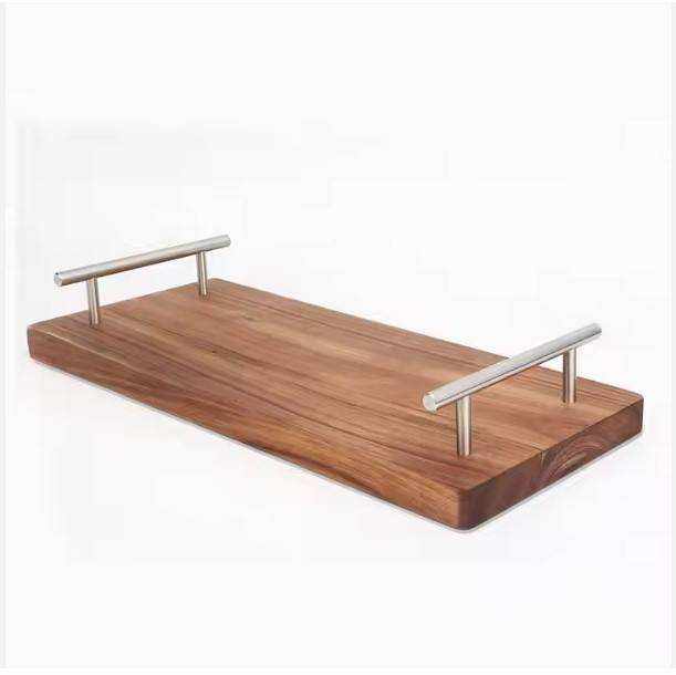 ถาดไม้คุณภาพสูง 100% ธรรมชาติ หรูหรา สวยงาม พร้อมหูจับเหล็ก ทนทาน ใช้กับเครื่องล้างจานได้ รูปทรงสี่เหลี่ยมผืนผ้า เหมาะสำหรับใช้ในบ้าน