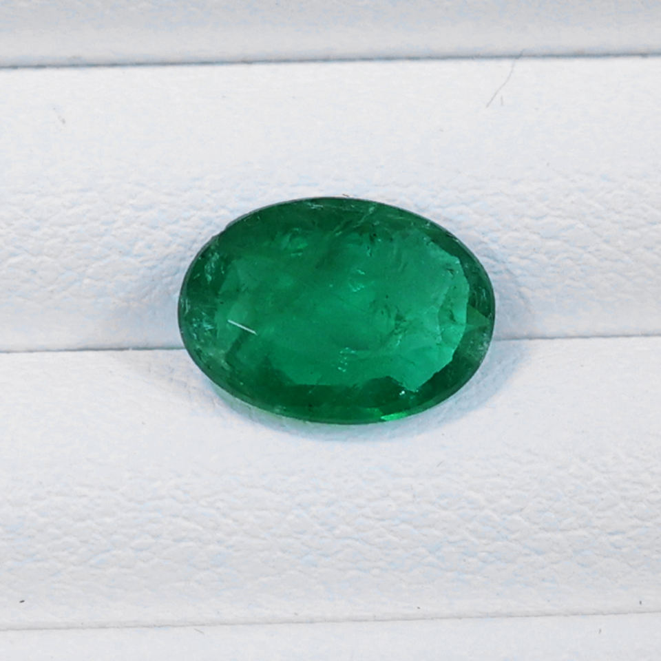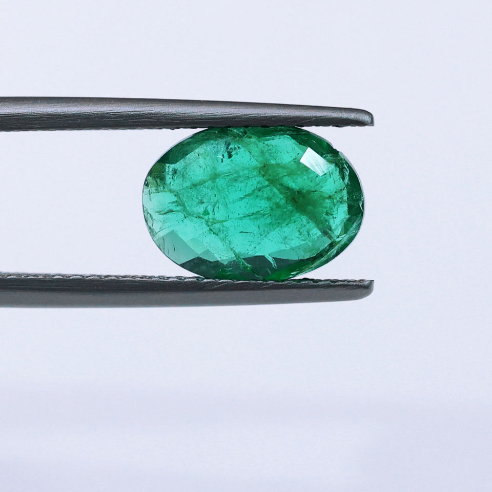 มรกตแซมเบียคุณภาพสูง 100% จากธรรมชาติ รูปทรงวงรี น้ำหนัก 2.05 กะรัต สีเขียวกลาง เหมาะสำหรับทำแหวนหรือจี้