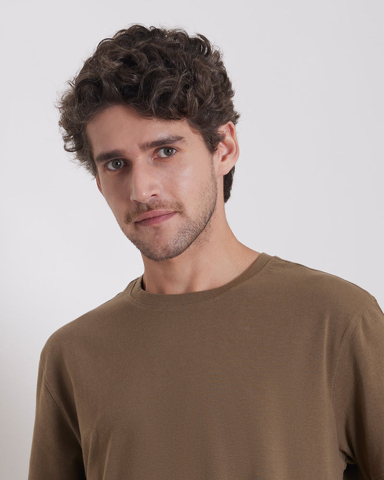 เสื้อยืดผู้ชายคุณภาพสูง ผ้าฝ้ายออร์แกนิค 100% ดีไซน์ล่าสุด สีน้ำตาลเข้ม เรียบง่าย สวมใส่สบาย รับผลิตแบบ OEM แขนสั้นถัก