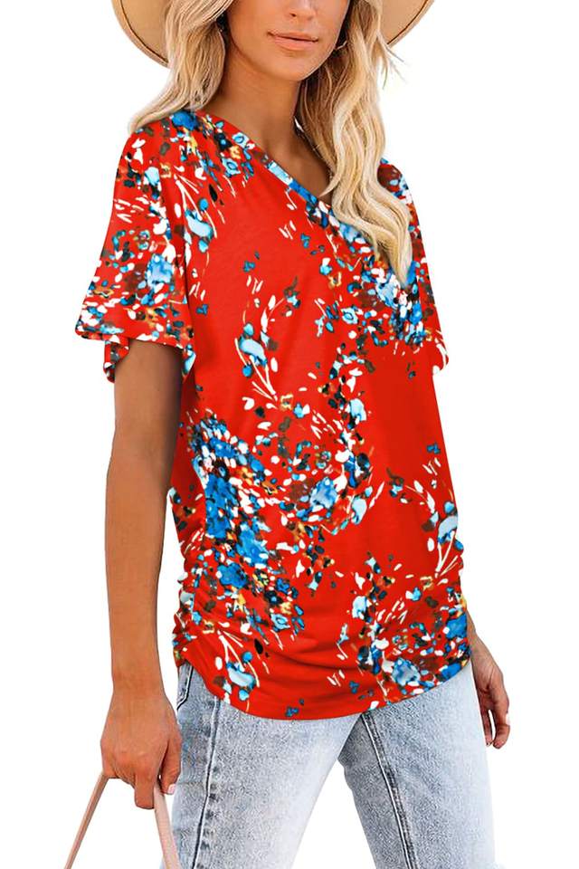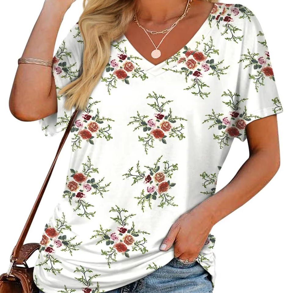 เสื้อเบลาส์คอวีสำหรับผู้หญิงเสื้อเบลาส์คอวีขนาดใหญ่พิเศษพิมพ์ซับลิเมชันเสื้อเบลาส์ผู้หญิงขนาดใหญ่พิเศษ
