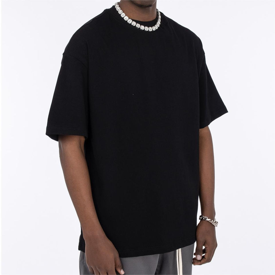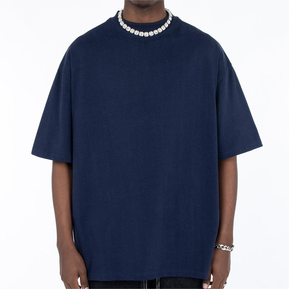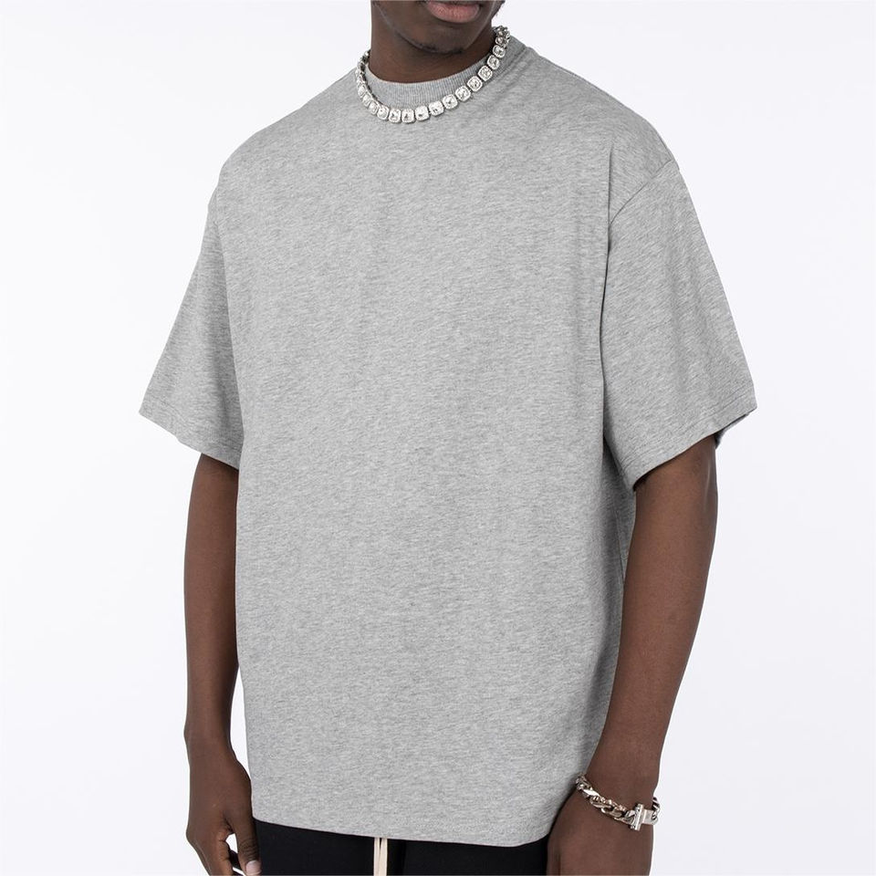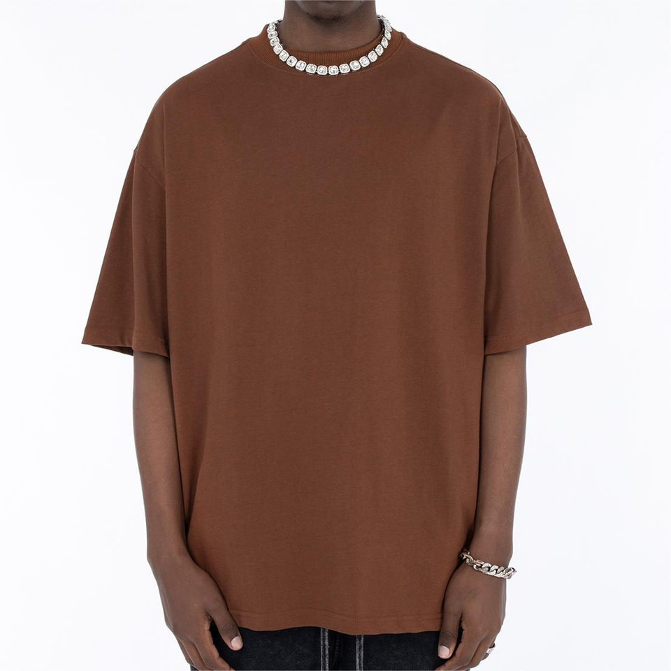เสื้อยืดบ็อกซี่ถักสำหรับผู้ชายผ้าโพลีเอสเตอร์100% ลำลองสีทึบเป็นมิตรกับสิ่งแวดล้อมโลโก้ด้านหน้าปรับแต่งได้