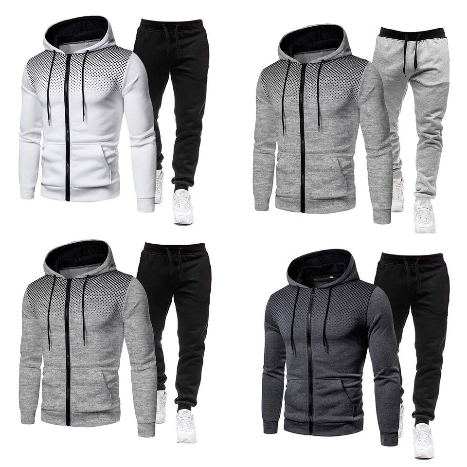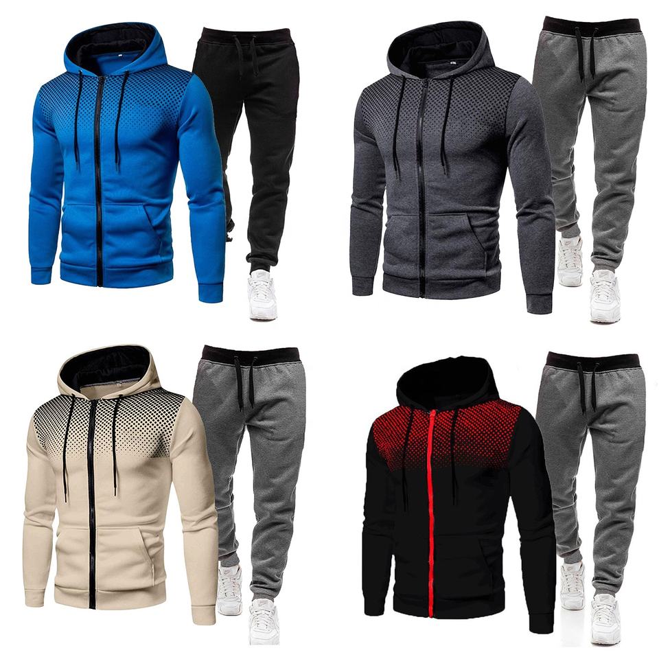 ชุดวิ่งออกกำลังกาย100% มีฮู้ดแบบมีซิปทำจากโพลีเอสเตอร์ชุดออกกำลังกายชุดวอร์มมีลายจุดมีขนแกะ