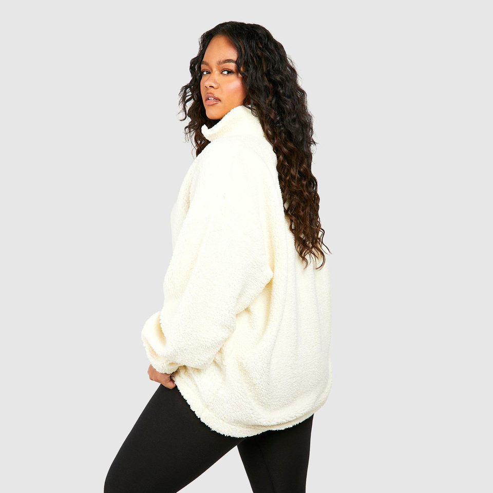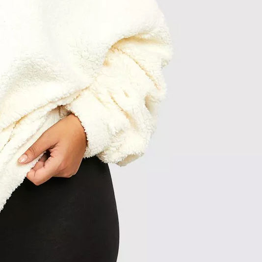 เสื้อฮู้ดดี้ทรงโอเวอร์ไซส์ ผ้าฟลีซเท็ดดี้ คอตั้ง
