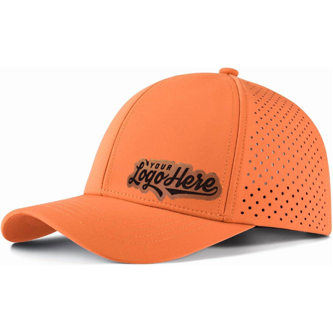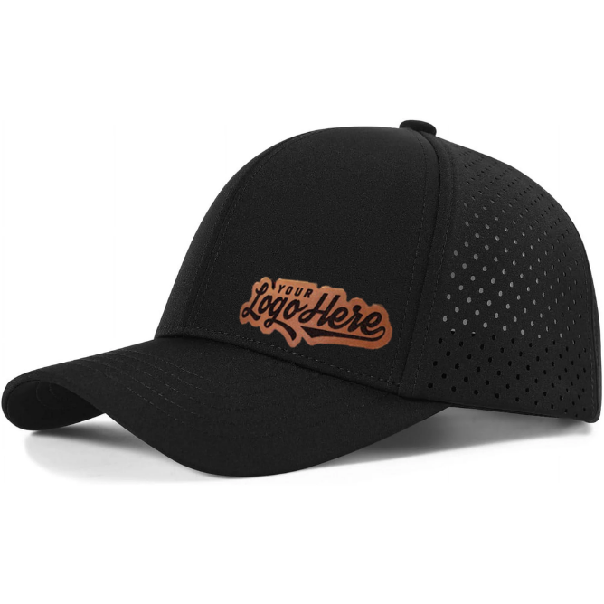 หมวกกอล์ฟแบบเจาะรูเลเซอร์โพลีเอสเตอร์100% หมวกมีแผ่นหนังแบบไม่มีรู6แผงหมวกฮิปฮอปแบบมีรูพรุนการเดินทางกลางแจ้ง