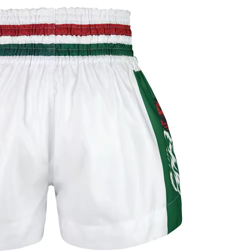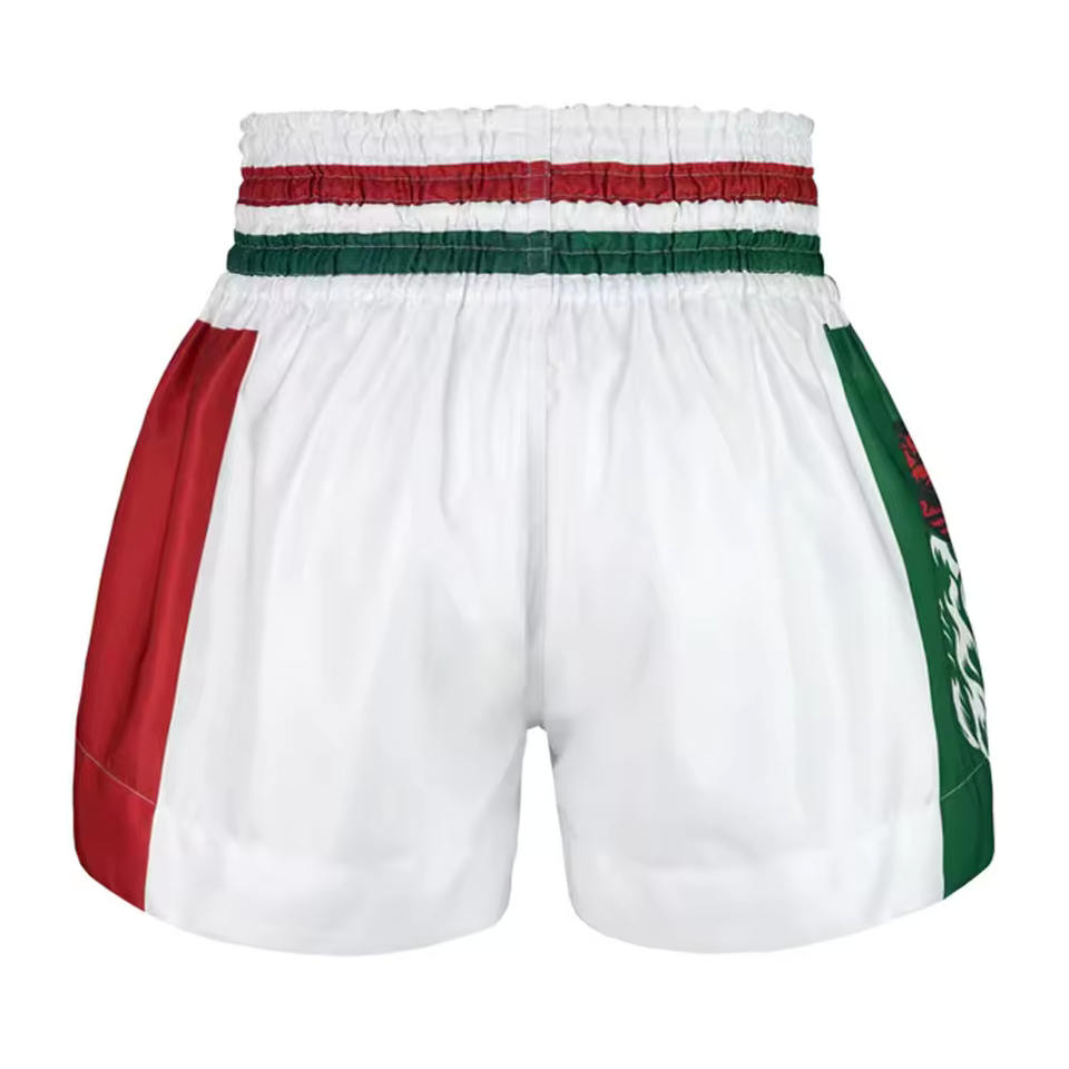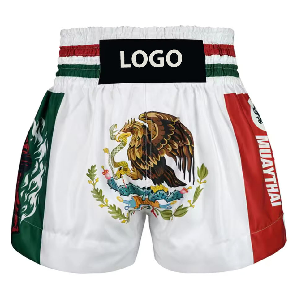กางเกงขาสั้นผ้าโพลีเอสเตอร์สำหรับมวยไทยแบบ100% ออกแบบโลโก้ได้ตามต้องการ