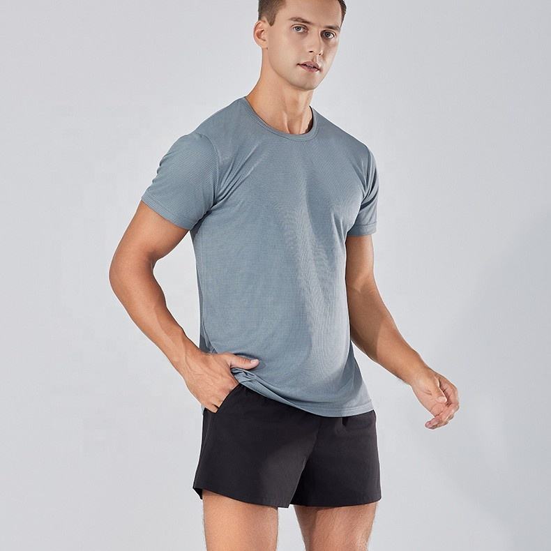 เสื้อกีฬาสำหรับผู้ชายผ้าโพลีเอสเตอร์100% แห้งเร็วระบายอากาศได้ดีโลโก้ที่กำหนดเอง
