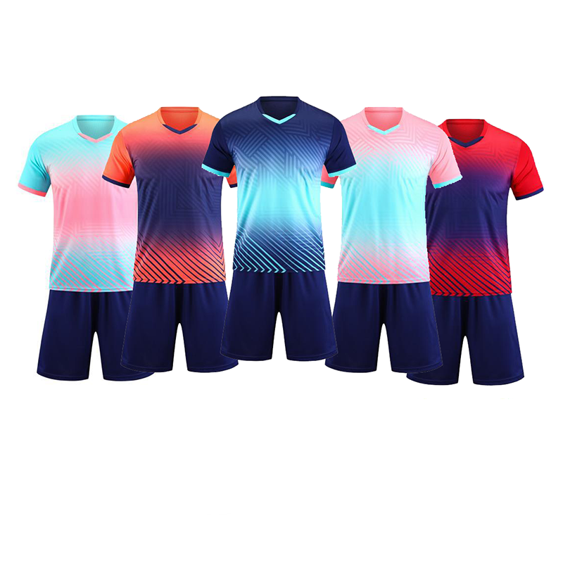 ชุดเสื้อฟุตบอลผู้ชายคุณภาพสูง 100% โพลีเอสเตอร์ คอวี แห้งเร็ว ขายส่ง ชุดทีมสโมสร น้ำหนักเบา ระบายอากาศได้ดี