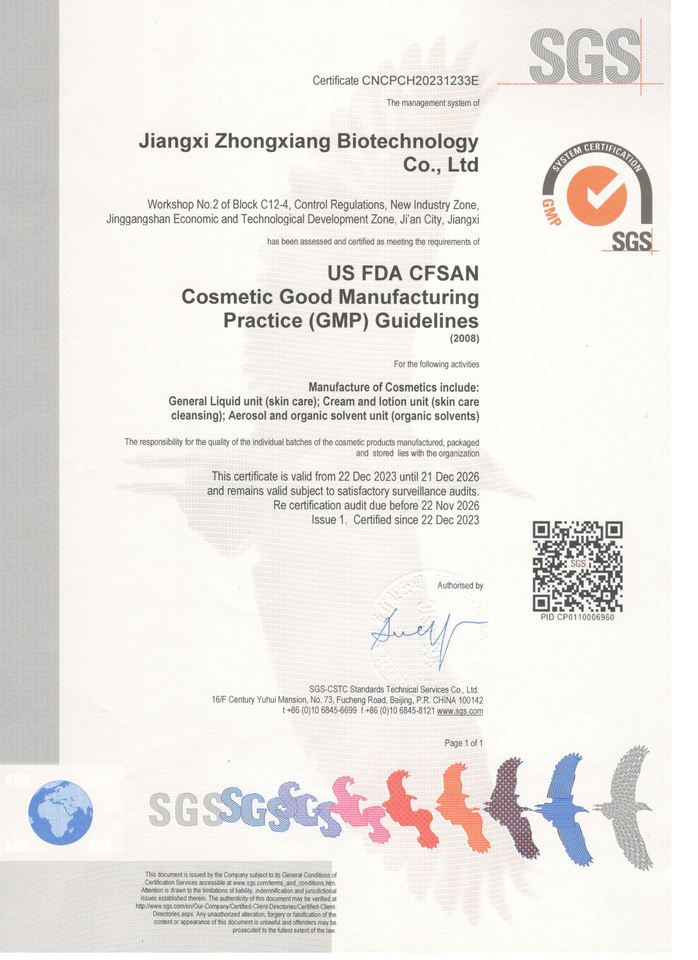 การรับรอง:GMPC, ISO, MSDS, COA