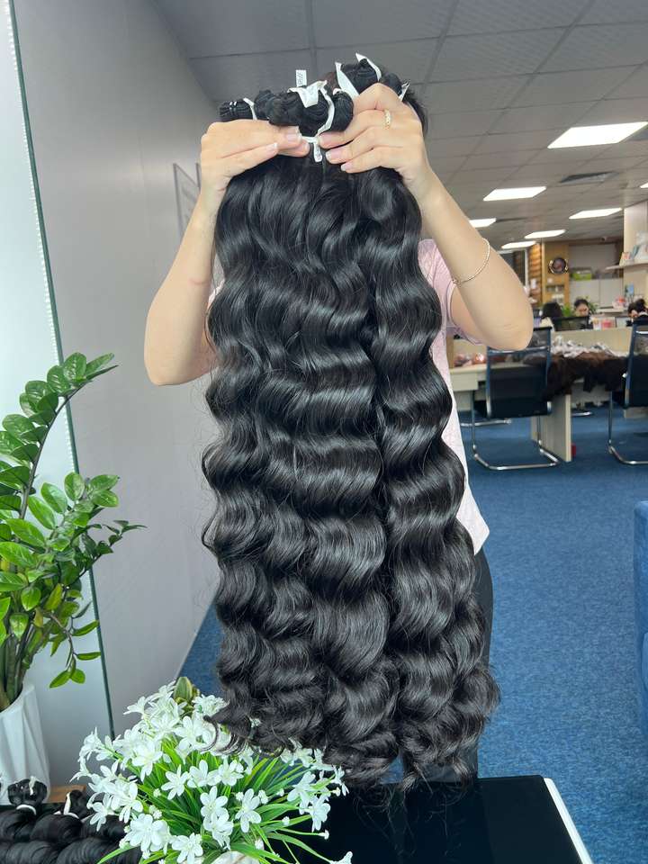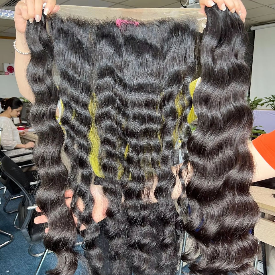 มัดผมมนุษย์แท้จากเวียดนามผม100% จากเวียดนามแบบเป็นลอนธรรมชาติผ้าลูกไม้ปิดด้านหน้า