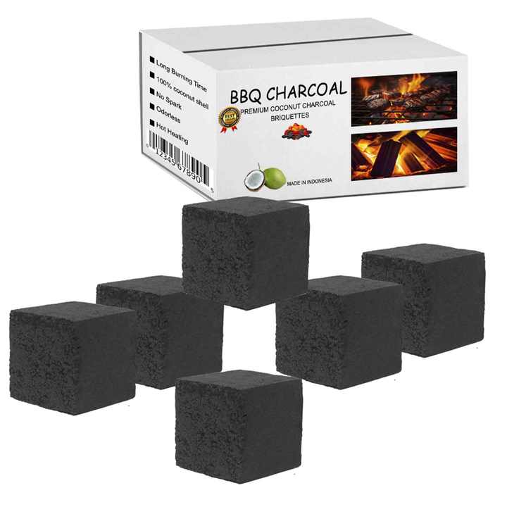 ก้อนถ่านสีดำสำหรับบาร์บีคิวไร้ควันทำจากเปลือกมะพร้าวไม้เนื้อแข็งธรรมชาติ100%