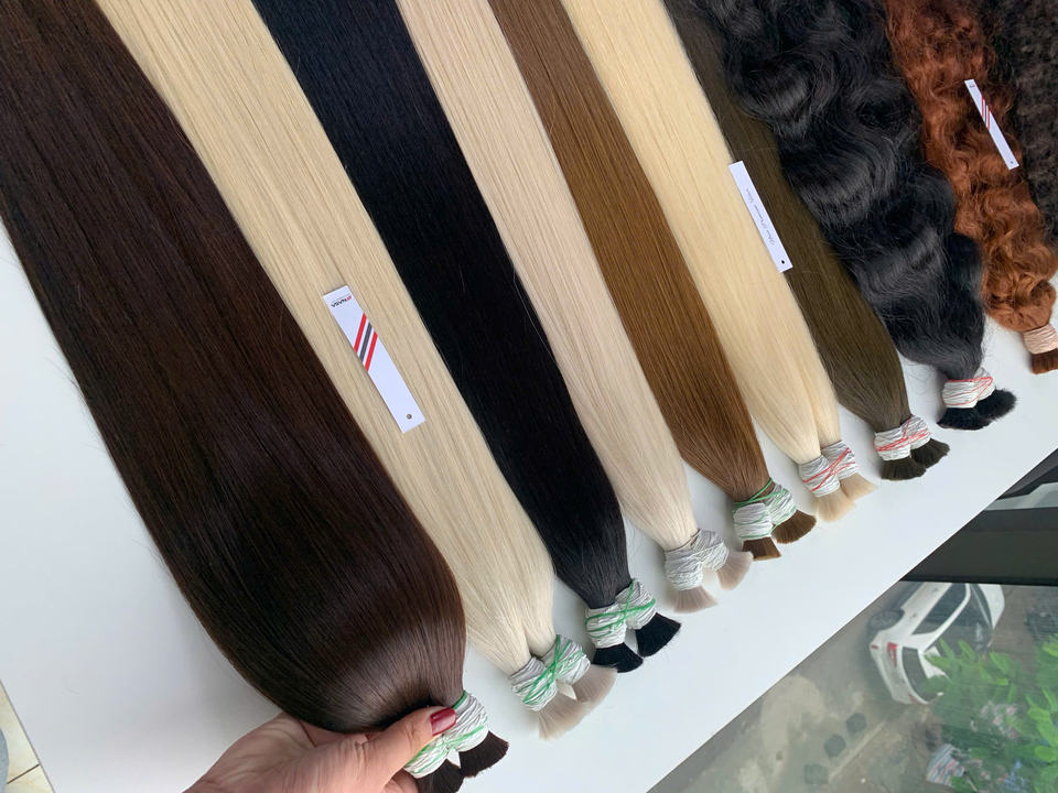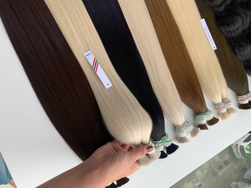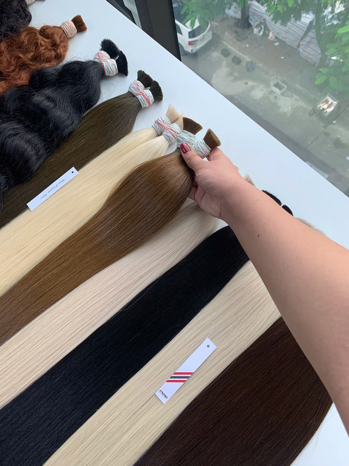 ผมต่อเวียดนามแท้ 100% คุณภาพสูง เกรดพรีเมียม จัดเรียงเกล็ดผม แบบตรงหยักศก สีน้ำตาล เขียว สีอ่อน ขนาด 2-3 เส้นต่อช่อ