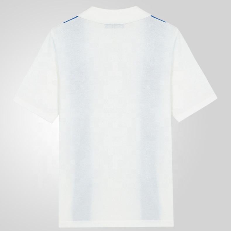 เสื้อโปโลกอล์ฟถักลายทางผ้าวิสคอสทรงหลวมกระดุม3เม็ดสำหรับผู้ชายผ้าปักโลโก้ได้ตามต้องการจาก100%