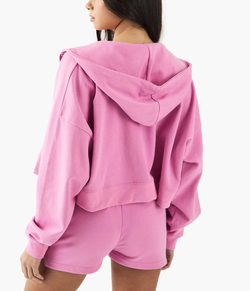 เสื้อฮู้ดและสเวตเตอร์ผ้าฝ้าย100% ของผู้หญิงเสื้อครอปแบบมีซิปไหล่ทรงโอเวอร์ไซส์เสื้อครอปสีพื้น