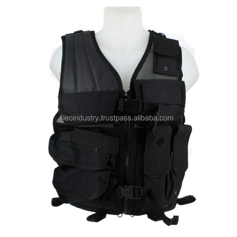เสื้อกั๊กยุทธวิธีลายพรางสีดำ1000D กันน้ำสวมใส่สบายสำหรับฝึกซ้อมกลางแจ้งอุปกรณ์ป้องกันส่วนบุคคล