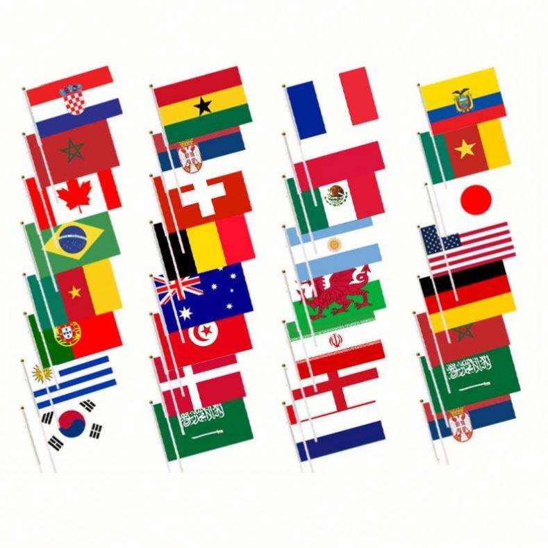 ธงมือถือคุณภาพสูง โพลีเอสเตอร์ 100D พิมพ์โลโก้ตามสั่ง ธงเชียร์แบบโบกสำหรับงานโปรโมชั่น